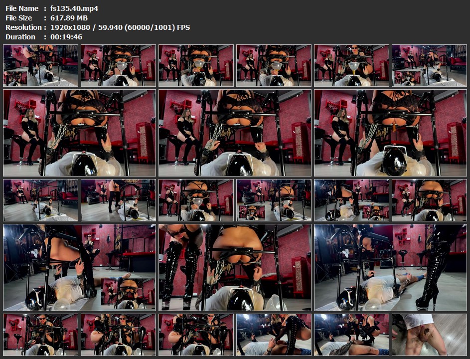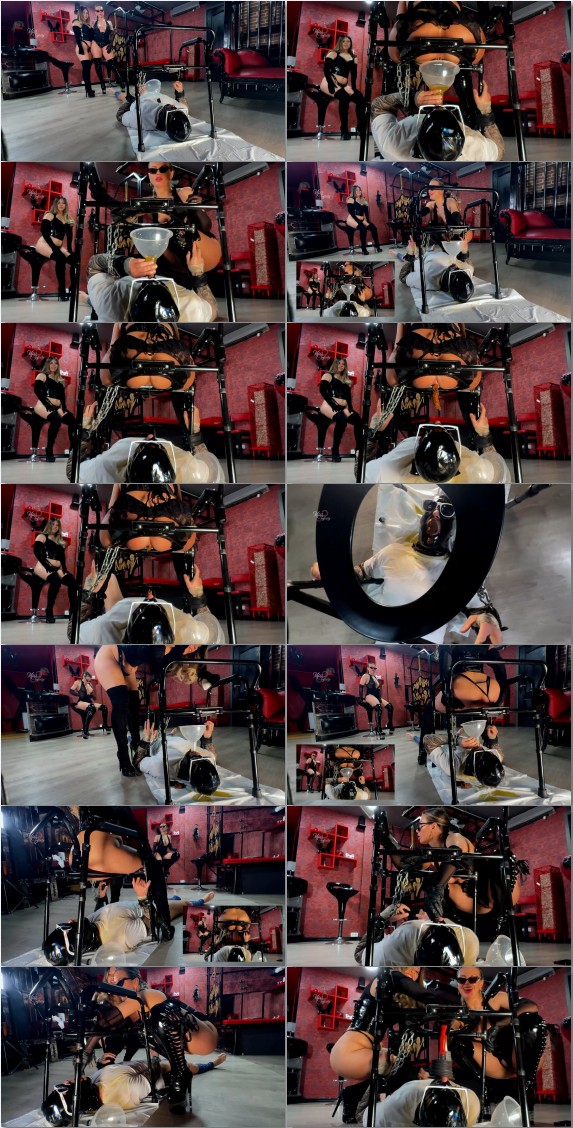 human toilet slace is serving 4 hot dominas. italian group femdom scat orgy
